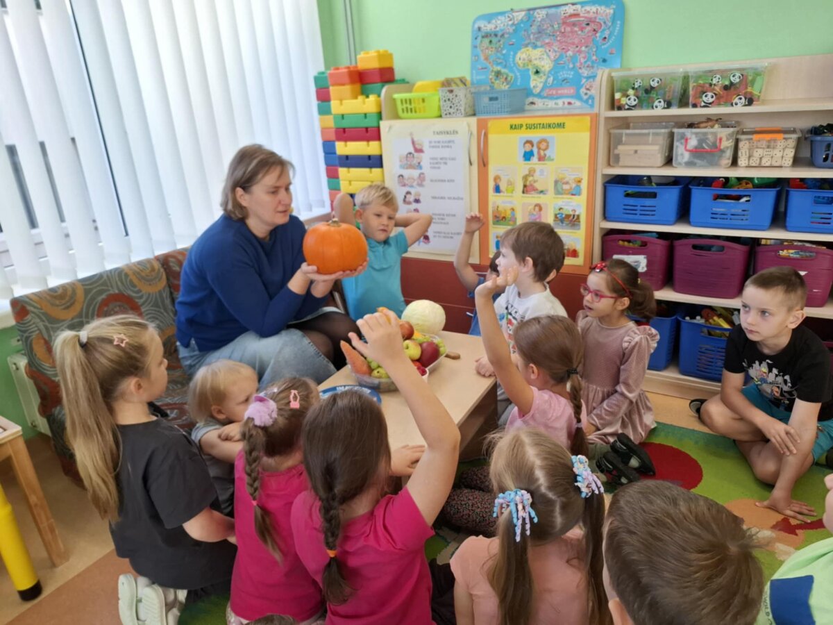 Spalio 20 d. ,,Kiškučių“ grupėje vyko edukacinė veikla apie sveiką mitybą. Į svečius atvykusi visuomenės sveikatos centro specialistė Agnė pasakojo vaikams, koks maistas reikalingas, kad augtume sveiki, stiprūs ir energingi. Vaikai sužinojo, kokiose daržovėse ir vaisiuose yra daugiausia vitaminų. Aptarėme, kokie produktai nėra sveiki - traškučiai, saldūs gėrimai, saldumynai, kurių reikėtų vengti. Specialistė priminė, kad norint jaustis gerai, reikia kasdien gerti daug vandens ir rinktis sveikesnius produktus.