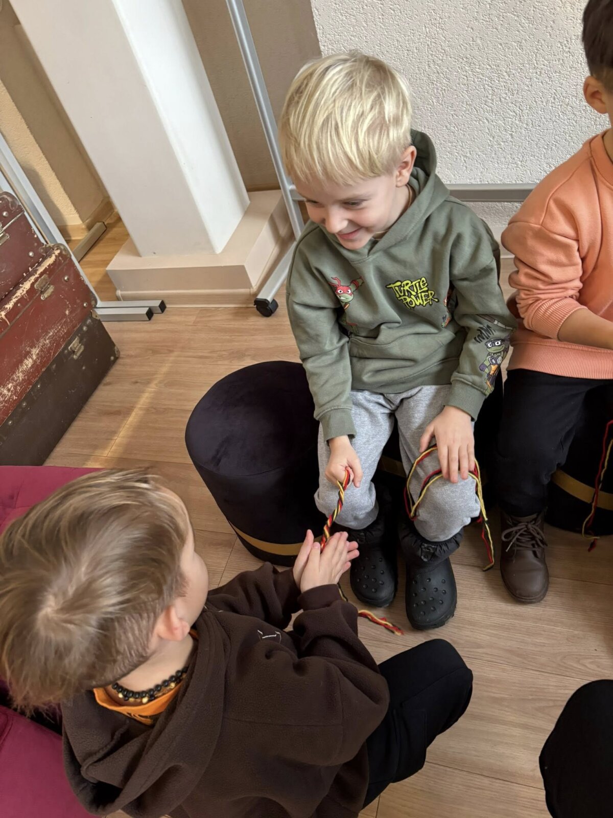 „Lakštingalėlių“ grupės vaikai ir mokytojos lankėsi Ignalinos krašto muziejuje. Vaikai apžiūrėjo Ingos Šidlauskienės eksponuojamą parodą „Kaukės ir lėlės“, dalyvavo edukacijoje „Draugystės apyrankė“. Vaikai vienas kitam padėdami nusipynė sau norimų spalvų apyrankes. Jos jau ant vaikų rankučių. Kaip gerai, kad yra šalia draugas ir Ignalinos krašto muziejaus darbuotojos.