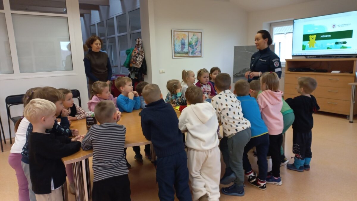 Ignalinos „Šaltinėlio“ mokyklos „Lakštingalėlių“ grupės vaikai, pedagogai bei Ignalinos policijos bendruomenės pareigūnai susitiko Ignalinos rajono savivaldybės viešojoje bibliotekoje. Susitikimo tikslas – sustiprinti vaikų žinias apie atšvaitų svarbą tamsiuoju paros metu. Tai buvo ne tik smagi bendra veikla su socialiniais partneriais, bet ir puiki galimybė atrasti naujas erdves bei integruotai įsigilinti į temą. Vaikai į biblioteką atėjo pėsčiomis, vilkėdami šviesą atspindinčias liemenes. Pakeliui jie prisiminė kelių eismo taisykles ir kelio ženklus.
