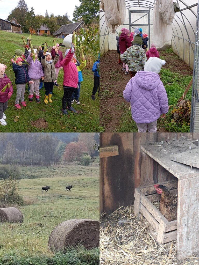 Šilta ir saulėta rudens diena pakvietė Dūkšto skyriaus „Ančiukų“ ir „Pelėdžiukų“ grupių vaikus į kaimo sodybą Alėjūnų kaime. Veiklų vaikai turėjo sočiai. Pirmiausia vaikučius pasitiko namų šeimininkas ir greta sodybos pasirodę du didžiuliai briedžiai. Reikėjo gero pusvalandžio kol apėjo visą sodybą: ūkį, daržus, patikrino šiltnamį, pasivaišino paskutiniais pomidorais. Išmoko naujų pastatų ir padargų pavadinimų – svirnas, kluonas, akėčios. Šeimininkai pasidžiaugė rudeniniu derliumi. Darželinukai rūšiavo daržoves, vardino jų pavadinimus. Pasakojo kokias daržoves augina jų namuose. Pasiėmę pintinę, ėjo į greta sodybos esantį miškelį. Nors surado tik vieną lepšiuką, bet džiaugsmo buvo labai daug.