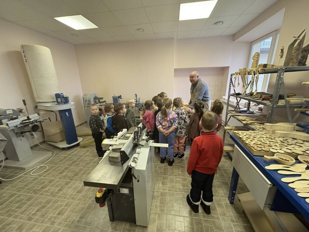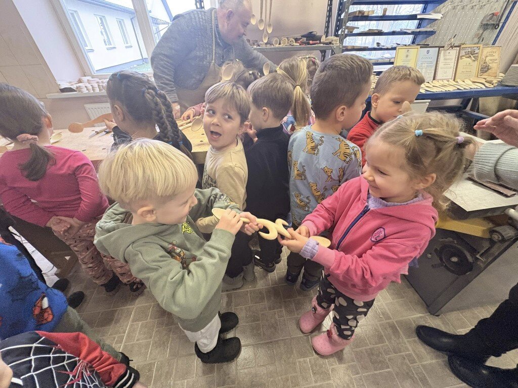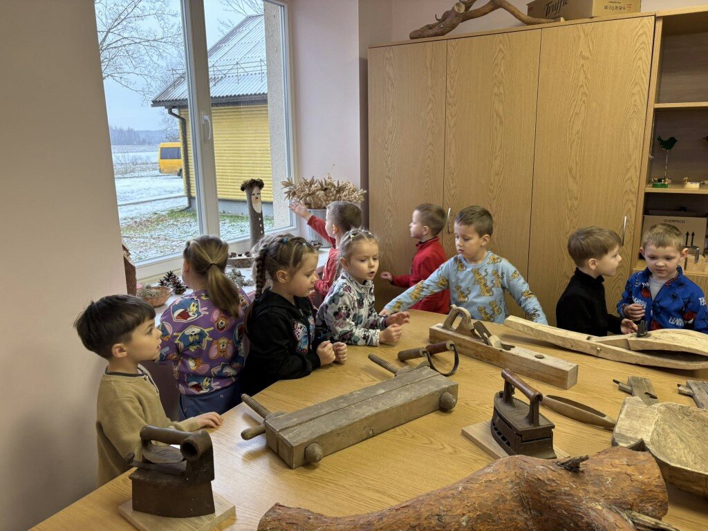 Kol bandelės kepė, vaikai pasigamino medinius pakabukus. Sotūs, pasipuošę pakabučiais, laimingi parvažiavome į darželį.