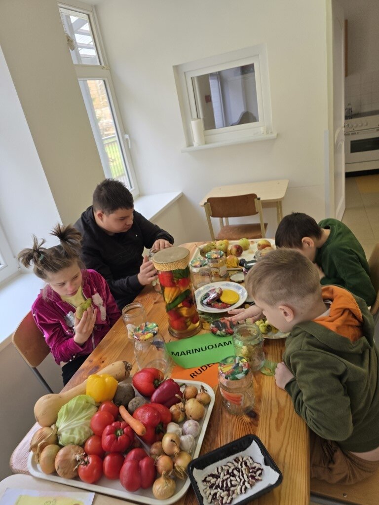 Spalio mėnesio pabaigoje ,,Šaltinėlio“ mokyklos lavinamosios klasės mokiniai dalyvavo edukacinėje integruotoje veikloje „Rudens spalvų mozaika“. Į veiklą įsitraukė ir tėveliai, pridėję pilnus krepšius rudens gėrybių. Su vaikais buvo daug kalbama apie rudenį, jo požymius gamtoje, besikeičiančias medžių spalvas, o taip pat vaisius, daržoves, grybus ir kitas rudens gėrybes. Veiklos metu mokiniai stebėjo, svėrė, lietė, uostė ir ragavo įvairias daržoves (agurkus, morkas, svogūnus, česnakus, pomidorus, burokėlius). Mokiniai patys ar padėjo dėti daržoves į stiklainius, pylė vandenį ir jas ,,marinavo“.