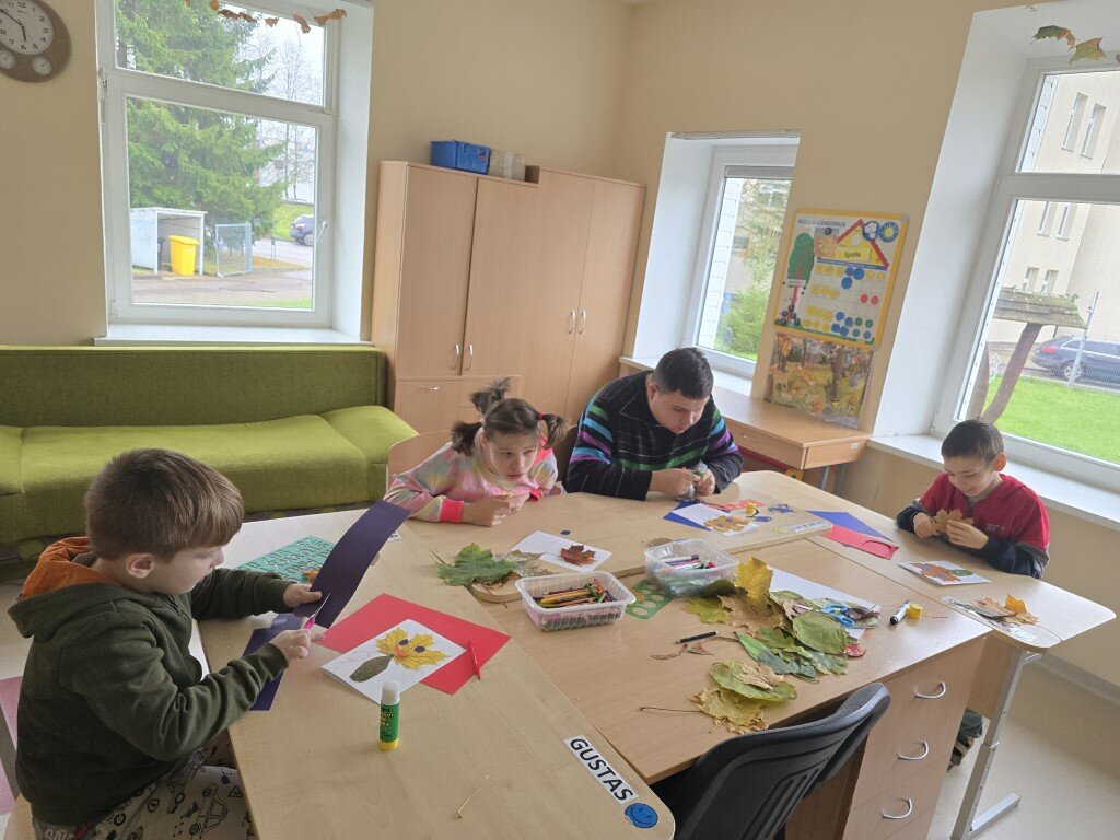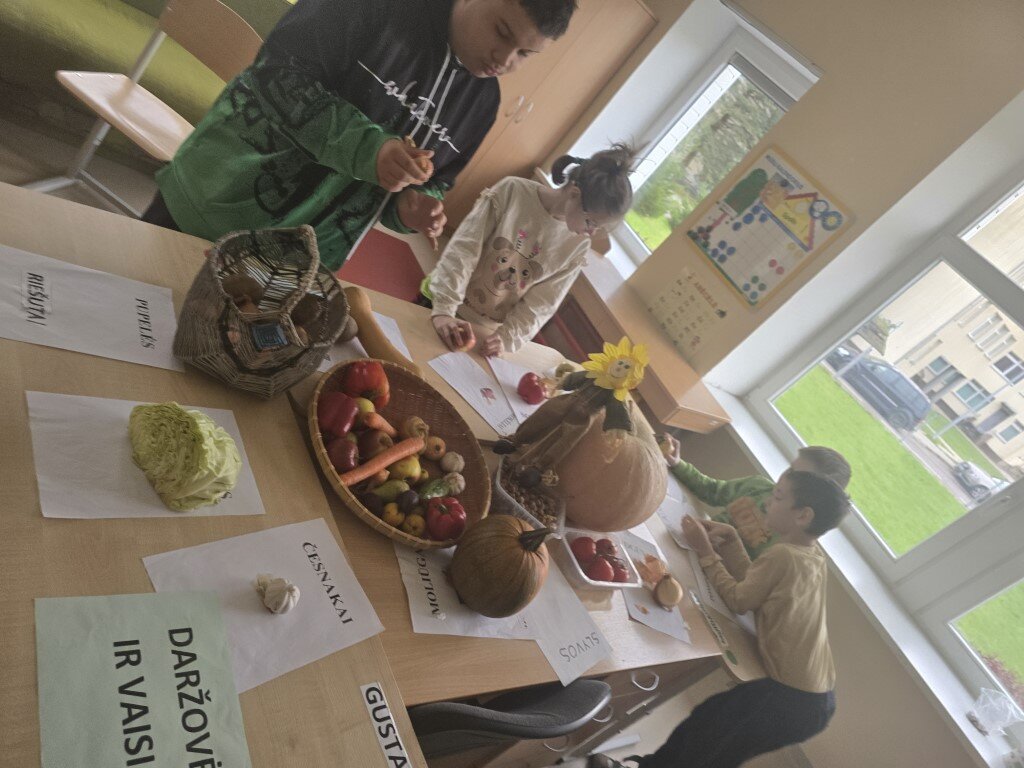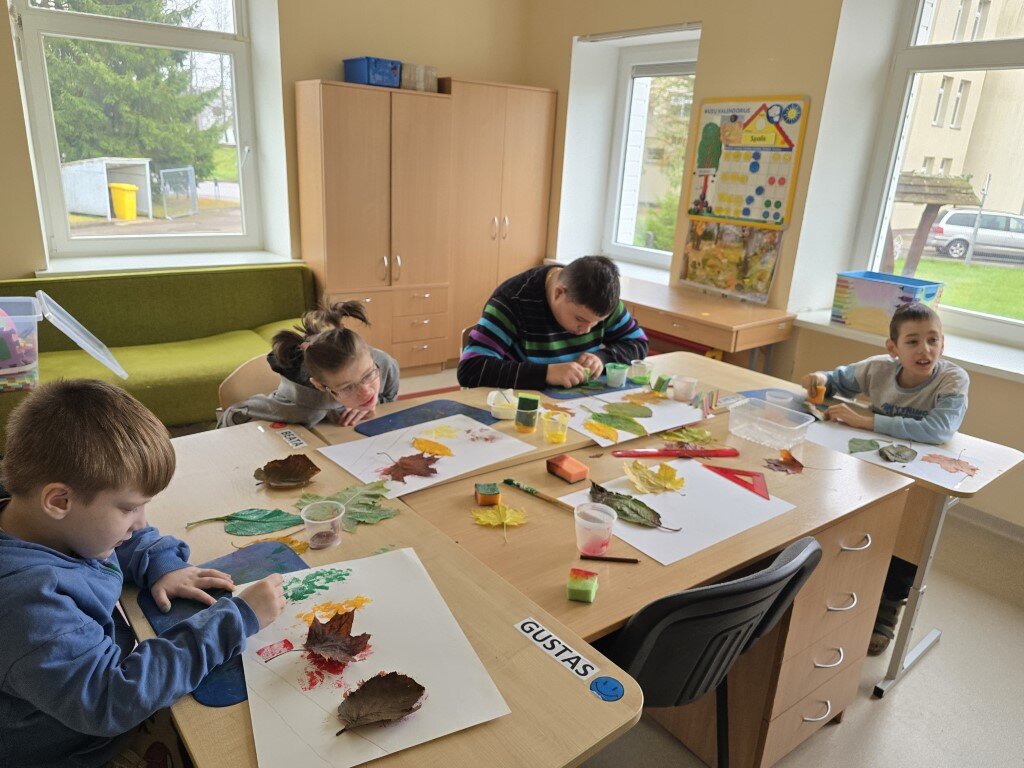 Kiekvienas mokinys kūrė savo „Rudens spalvų mozaiką“: klijavo lapus ant popieriaus, spaudė lapo spaudą dažais ir komponavo paveikslą iš gamtinių medžiagų. Kūrė darbelius iš kaštonų, gilių. Piešė, tapė neįprastomis priemonėmis, lipdė daržoves, vaisius.