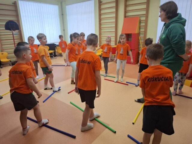 Sausio 21d. priešmokyklinės „Kiškučių“ grupės vaikams vyko užsiėmimas, skirtas plokščiapėdystės prevencijai. Užsiėmimą vedė sveikatos biuro specialistė Agnė. Vaikai žaismingai atliko pėdų mankštos pratimus su lazdomis ir kamuoliais. Rideno, spaudė, kėlė ir valdė priemones pėdomis, taip stiprindami pėdų raumenis, lavindami lankstumą, kūno pusiausvyrą. Šios veiklos metu vaikai patyrė judėjimo džiaugsmą ir mokėsi rūpintis savo sveikata nuo mažens.
