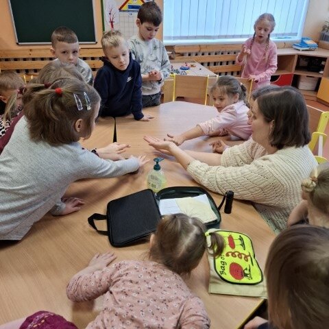 Sausio 29 d. Vidiškių skyriuje vyko edukacinė valandėlė skirta užkrečiamų ligų profilaktikai ir higienai „Bakteriukui, oi riesta bus“. Visuomenės sveikatos centro specialistė atliko eksperimentą, kuris vaizdžiai parodė, kaip bakterijos „bijo“ vandens ir muilo. Naudodamiesi specialiu šviestuvėliu, vaikai apžiūrėjo savo rankas ir įsitikino, ar jos švarios. Specialistė supažindino su bakterijomis – paaiškino, kaip jos patenka į žmogaus organizmą ir ant kokių daiktų jų galima rasti. Vaikai sužinojo, kodėl svarbu laikytis asmens higienos ir reguliariai plauti rankas. Pabaigoje kiekvienas ugdytinis piešė bakterijas.
