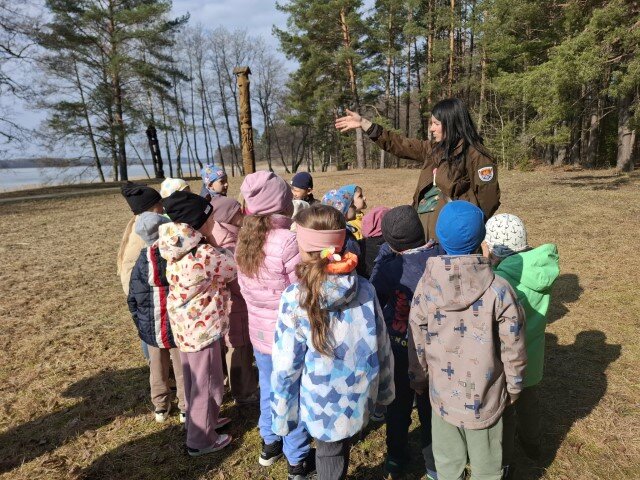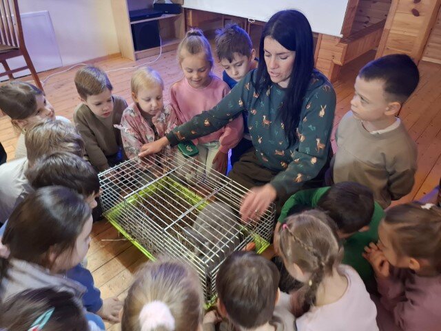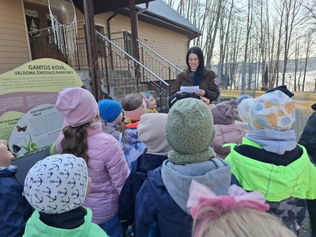 Gražią saulėtą pavasario dieną „Kiškučių“ priešmokyklinės grupės vaikai leidosi į prasmingą išvyką į Gamtos mokyklą. Čia juos pasitiko gamtininkė - edukatorė Veronika, kuri įtraukiančiai papasakojo apie pavasarį sugrįžtančius paukščius, jų įvairovę ir gyvenimo ypatumus. Vaikai noriai įsitraukė į veiklas – minė mįsles apie paukščius, klausėsi jų balsų ir bandė juos atpažinti. Kūrybinėje veikloje vaikai iš įvairių žolynų kruopščiai kūrė paukšteliams lizdelius, į kuriuos dėjo margintus kiaušinėlius. Daug džiaugsmo vaikams suteikė judrios estafetės ir žaidimai. Vaikai aktyviai judėjo, bendravo ir smagiai leido laiką pavasariu dvelkiančioje gamtoje.Vėliau edukatorė pakvietė vaikus susipažinti su Velykų tradicijomis ir papročiais. Vaikai dalyvavo viktorinoje, atsakinėjo į klausimus, džiaugėsi savo žiniomis ir naujais atradimais. Kupini gerų emocijų ir įspūdžių vaikai jaukiai susėdo prie arbatos stalo, vaišinosi skanėstais ir dalijosi patirtais įspūdžiais. Ši išvyka praturtino vaikų patirtis, sustiprino jų smalsumą ir priminė, kokia nuostabi gamta ir kaip smagu ją pažinti kartu.